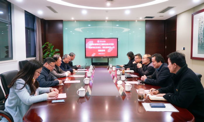 12月17日下午,常州工程职业技术学院党委书记王光文、院长吴访升一行来校调研。校党委书记曹雨平、校长汤正华、副校长张兵携党委办公室、院长办公室、教务处负责同志与来宾交流。