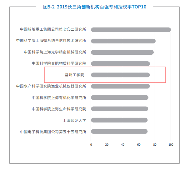 (2)常州工学院位于2019长三角创新机构百强专利授权率TOP10(排名第五)