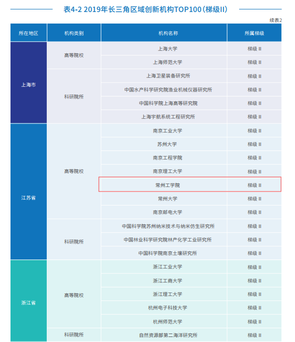 (1)常州工学院位于2019年长三角区域创新机构TOP100(梯级II)