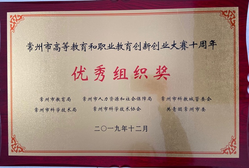 近日,常州市第十届高等教育和职业教育创新创业大赛暨举办十周年总结表彰大会在常州纺织服装职业技术学院举行。我校荣获常州市高等教育和职业教育创新创业大赛十周年 “优秀组织奖”,创新创业学院