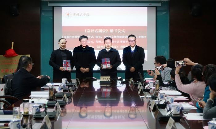 会上,研究院顾问、长期致力于常州本土文化和常州大运河文化专题研究的薛焕炳向夏锦文赠送了所著的由常州市大运河文化带建设工作领导小组办公室出品的常州运河文化丛书之一——《常州名园录》。