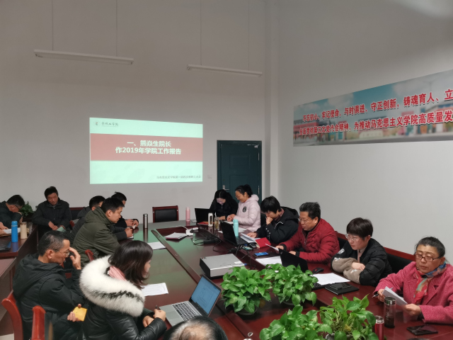 熊焱生在报告中全面回顾了2019年马克思主义学院高质量发展所取得的主要业绩,明确了学院2020年工作主要思路和努力方向。他强调,政治强是对思政课教师第一位的要求,认真讲好思政课是思政课教师肩负的第一职责。他希望,全院教职工要深入学习贯彻习近平新时代中国特色社会主义思想和党的十九大、十九届四中全会精神,不忘初心、牢记使命,团结奋进、砥砺前行,强化政治意识、使命意识、奋斗意识,增强铸魂育人本领、教研科研本领、社会服务本领,聚焦主责、教学为先,聚焦创新、学科为要,深入贯彻学校第三次党代会精神和第十次教学工作会议精神,为推动学院高质量发展、为建设高水平应用型地方大学作出新的更大贡献。