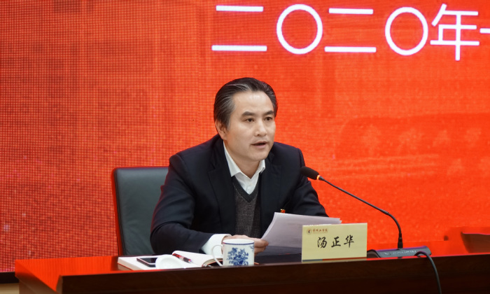汤正华要求全校各级党组织认真贯彻落实本次主题教育总结大会精神,特别要组织全体党员、干部学习习近平总书记在“不忘初心、牢记使命”主题教育总结大会上的讲话,学深悟透,把“不忘初心、牢记使命”作为终身课题,不断巩固拓展主题教育成果。