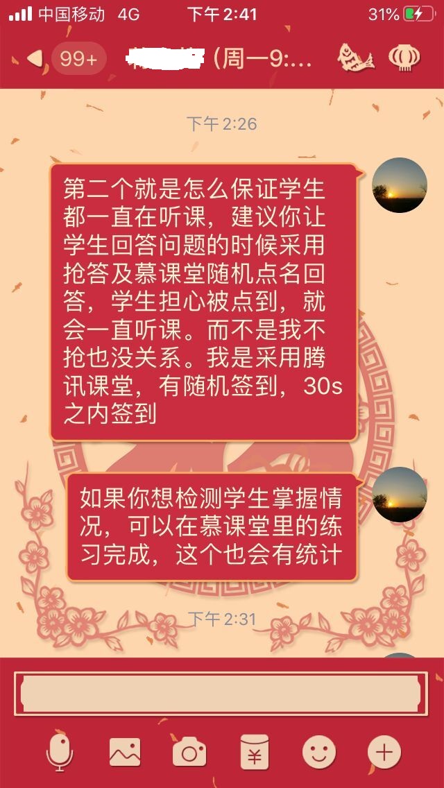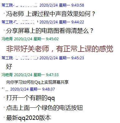 当天,教学督导们通过中国大学MOOC、“超星”慕课和“毕博”网络教学平台等在线课程平台、课程学生QQ群或微信群,详细查看课程资源建设基本情况,跟随任课教师的节奏和学生一起观看课程视频,参加辅导答疑、讨论等活动,全方位了解和评价在线课程的教和学。督导们还与任课教师互动交流,对任课教师在线教学提出改进建议和意见。根据督导的反馈,总体上,教师们均以饱满的热情投入到在线教学工作中,整体教学秩序良好。