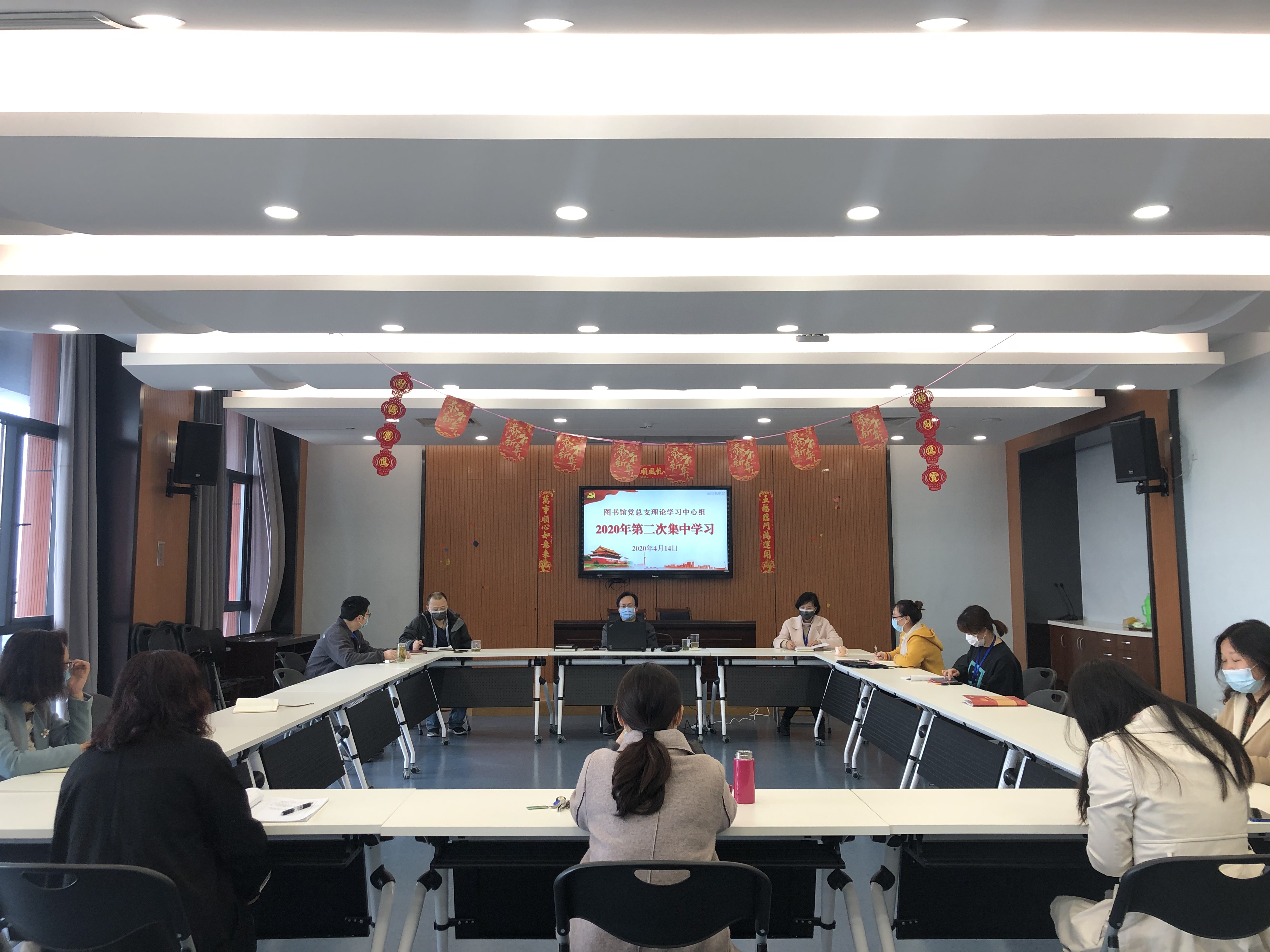 4月14日,图书馆党总支理论学习中心组(扩大)举行专题学习,就校党委三届四次、五次全会决议、学校2020年工作要点,习近平总书记相关重要论述等进行集中学习传达。