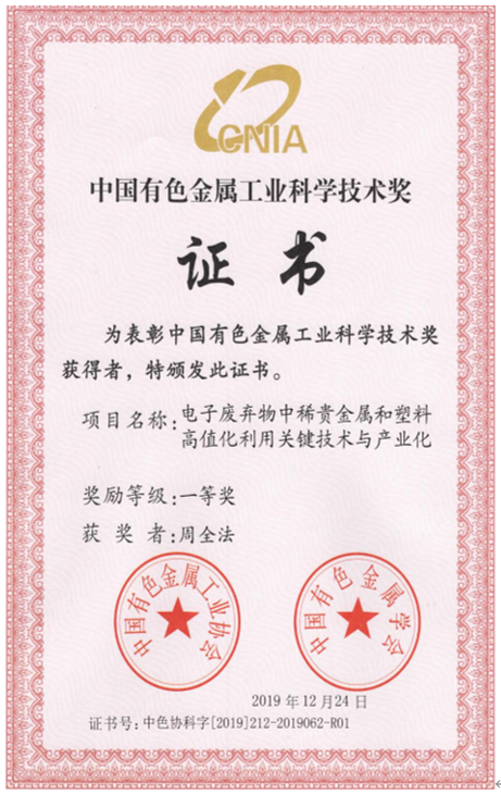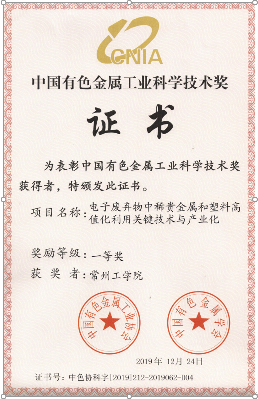 近日,我校资源环境研究院周全法教授课题组的成果《电子废弃物中稀贵金属和塑料高值化利用关键技术与产业化》获中国有色金属工业科学技术奖一等奖。该成果开发了混杂电子元器件智能化识别和自动分类-元器件机械法预处理-多金属绿色分离-电子化学品深加工技术,研制了混杂元器件自动识别分类、自动可见铟电解深加工装置等关键装备,开发形成了银系列、金系列、铂族金属系列、高纯铟、高纯四氯化锗等电子化学品;开发了热塑性和热固性塑料-原位扩链修复-高分子再生合金-废PCB粉料基协同抑味型再生复合材料技术,研制了废旧塑料浮选装置等关键装备,开发形成了原位扩链改性ABS、PA6/wPP再生合金、废PCB粉料基协同抑味型再生材料等高值化再生塑料系列产品。相关成果技术处于国际领先水平,形成了12件授权发明专利、15篇论文和1部著作。成果已经在6家企业建成了11条示范生产线,2016-2018年累计产值达到11.42亿元,利税达1.44亿。