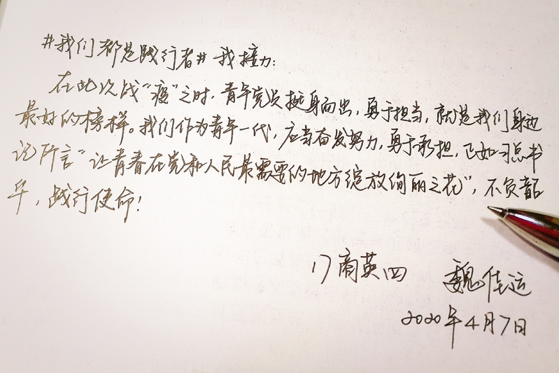为深入学习贯彻习近平总书记给北京大学援鄂医疗队“90后”党员重要回信精神,形成大学习、大讨论、大实践的活动态势,外国语学院党委学生党支部以“我们都是收信人”为主题,通过云学习、云演讲、云分享、云寄语和云接力等形式组织开展了一次特别主题党日活动。