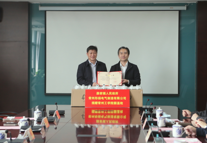 4月22日下午,薛家镇党委书记徐俊、管委会副主任印志威一行来校,向学校捐赠500支额温枪和10000只口罩。这笔物资可有效缓解我校疫情防控工作压力,增强我校复学应急处置能力和基础保障。校党委书记曹雨平,校长汤正华,副校长朱锡芳,校党委常委、党委宣传部部长王萍霞及党委办公室、院长办公室相关负责人接待客人。