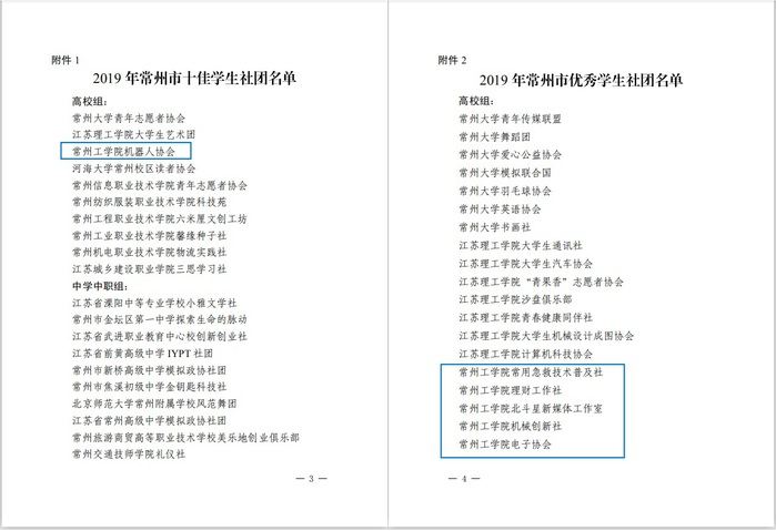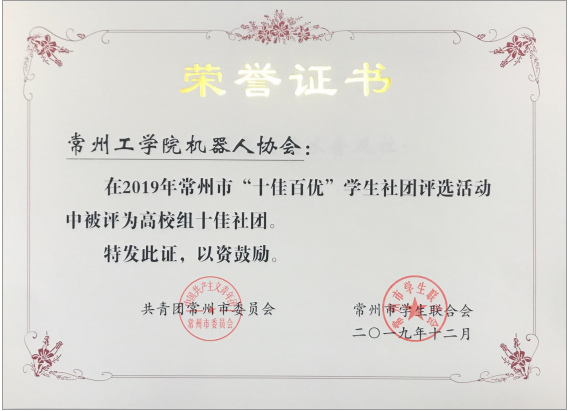 11月至12月,共青团常州市委员会、常州市教育局、常州市学生联合会开展2019年常州市“十佳百优”学生社团评选活动。