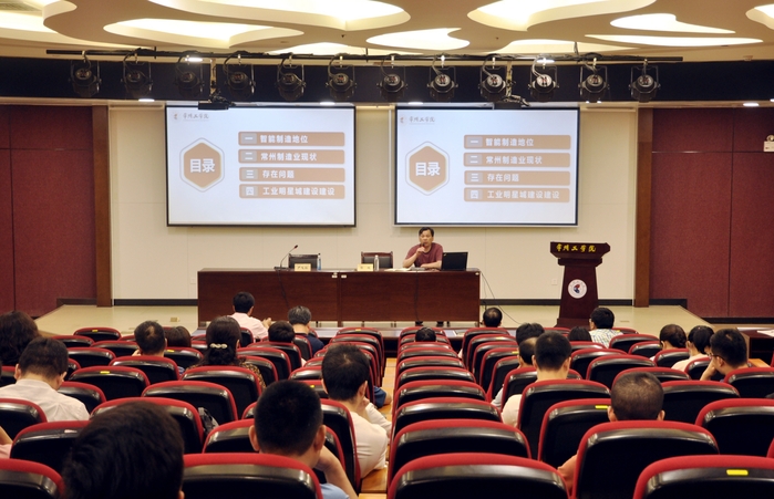 院长郭魂作题为“‘全链+碎片’智造——常州工业智造明星城建设的蝶变之路”的交流发言,他从智能制造地位、常州制造业现状、存在问题、工业明星城建设等四个角度阐明了其主持的常州工学院“五大明星城”建设研究课题组的研究进展。明确学院的发展规划和政策导向,希望全院教师在“全链+碎片”有机融合,做强细分领域,完善扶持、监管和评价机制,创新产教融合合作模式等四方面群策群力,以决战决胜的干劲,全力以赴完成学院各项任务,奋力开创学院、学校事业发展新局面。