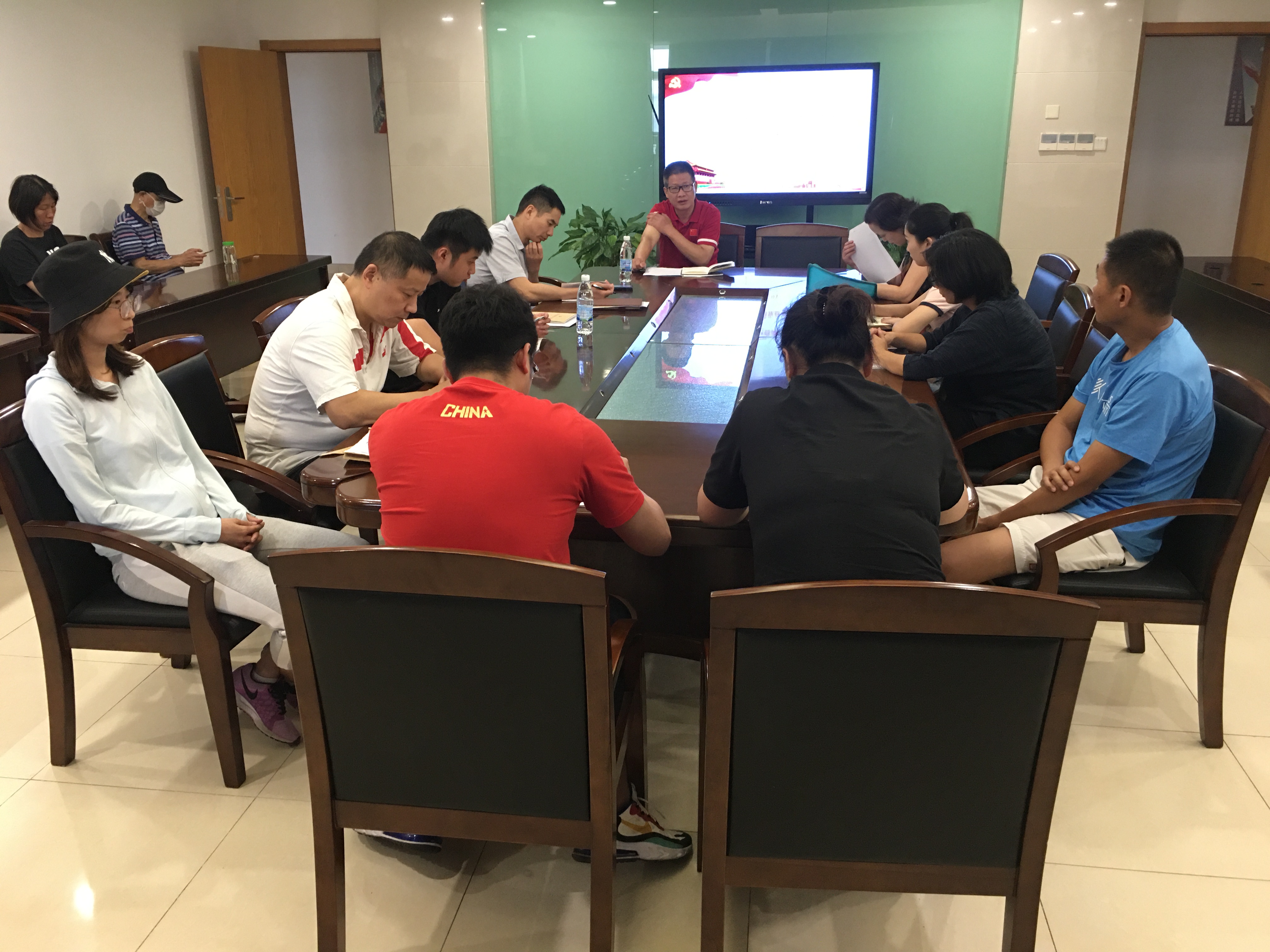 会后,王红福副主任主持以“忆往昔、展未来”为主题,召开庆祝建党99周年座谈会,对于多年来从事一线体育教学工作的老教师给予了充分的肯定,与会者就部门的师资引进、教学、科研工作进行了讨论和交流,将以推进部门重点工作为抓手,落实做细,实现体育课教学部工作高质量发展。