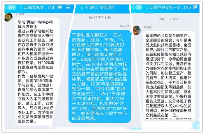2020年全国“两会”彰显了中国砥砺前行的信心和方向,为深入学习、贯彻落实“两会”精神,后勤党总支积极响应,整个6月,后勤党总支中心组开展了集中学习、工作例会部署、支部党日活动、网络学习交流等教育活动,引导全体党员干部、教职员工深刻理解、准确把握全国“两会”精神实质和科学内涵。