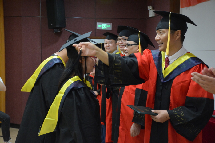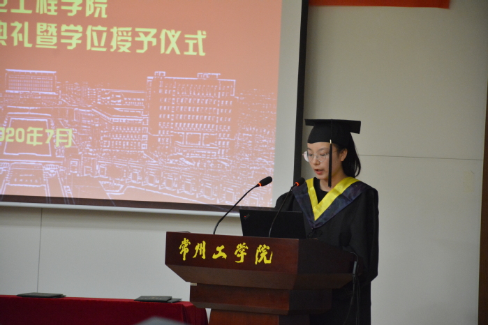 在庄严的国歌声中,毕业典礼正式拉开序幕。会上,蒋渭忠宣读了2020届学士学位授予决定,院领导及教师代表为全体毕业生颁发学位证并拨流苏。