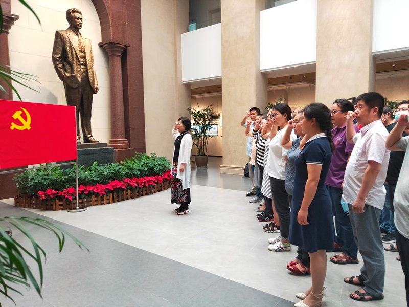 纪念馆里,全体党员面向党旗,重温入党誓词,回顾了瞿秋白同志和张太雷同志波澜壮阔的革命人生。大家对瞿秋白、张太雷、恽代英为代表的“常州三杰”矢志践行共产主义、“为天下人谋永久的真正的幸福”的思想精髓有了更深刻的理解,对红色文化的学习研究和传承发展有了更系统的认识。