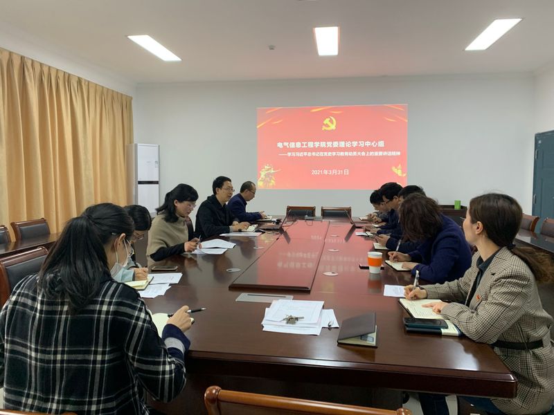 3月31日上午,电气信息工程学院学院党委理论学习中心组开展“学习习近平总书记在党史学习教育动员大会上的重要讲话精神”专题学习研讨。中心组全体成员(扩大)参加学习。会议由院党委书记李俊生主持。