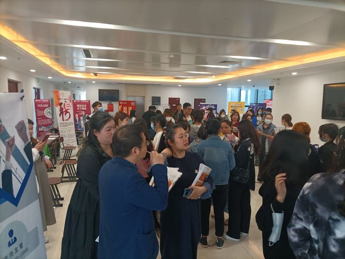 本次招聘会以教育机构为主,学而思线下校区、高途课堂和名思教育等权威教育机构均来到现场宣传企业文化,招揽外语专业人才。会场摆放众多招聘公告,在场企业招聘人员十分热情地向参加应聘同学介绍所属企业的工作待遇和发展前景。