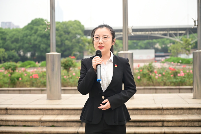 学生党员代表王滢以《红船,从这里起航》为题宣讲红船精神,她讲述到:红船精神是中国革命精神之源,是开天辟地、敢为人先的首创精神,是坚定理想、百折不挠的奋斗精神,是立党为公、忠诚为民的奉献精神。作为新时代的中国青年,要勇于承担历史使命,发扬优良革命传统,传承好“红船精神”,坚定成长为又红又专、德才兼备的社会主义建设者和接班人,让中华巨轮扬帆远航!