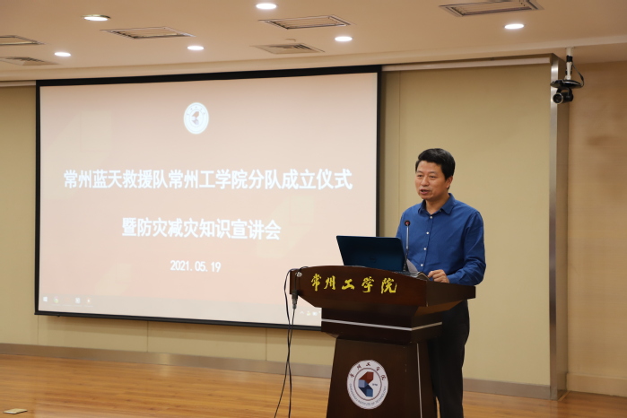 5月19日下午,“常州蓝天救援队常工院大学生队成立仪式暨防灾减灾知识宣讲”在我校辽河路校区如期举行,师范学院党委书记肖华、校团委书记许文婷、后勤管理处副处长陈晓庆、常州市应急管理局救援协调和预案管理处副处长曹媛媛、常州蓝天救援队队长田辉等出席会议。常州蓝天救援队成员及我校学生代表参加活动。