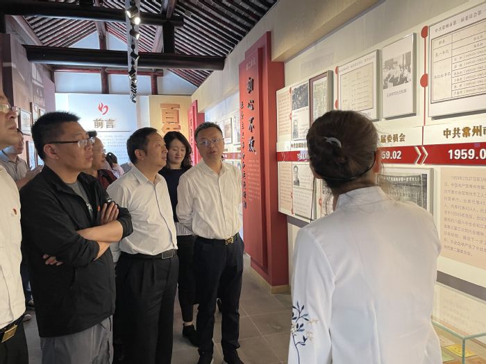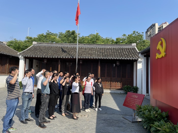 大家在讲解员的带领下,参观“红馆”陈列的图片、影像、雕塑等展品。展厅通过声、光、电、数字影像等高科技技术展示当时中共武进县委领导开展的一系列革命斗争,展示常州近百年来的党史、革命史和组织史料。回望常州百年革命奋斗历史,大家感受革命先烈的初心,缅怀先烈,坚定信念。参观后,全体中共党员还在党旗前庄严宣誓,重温入党誓词,激励自己要传承红色血脉,继承红色基因,不忘初心、牢记使命。