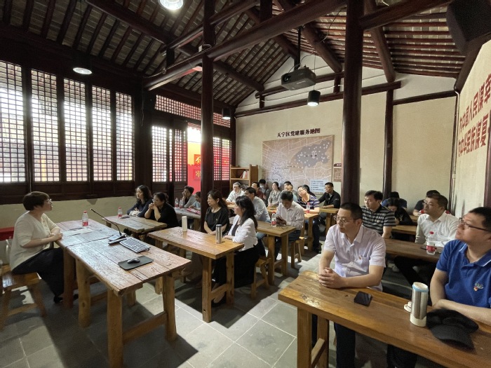 在“红馆”的初心课堂,马克思主义学院副院长夏天静以《不忘初心、牢记使命、为党育人、为国育才》为题,为大家上了现场实景党课,机关党委书记钱红萍主持。结合此次参观,夏天静从学习好、把握好和落实好习近平总书记在清华大学考察时的重要讲话精神三个层次,与大家分享学习体会和心得,对与会教师提出“要成为大先生,要作学生‘为学、为事、为人’的示范,帮助学生成长为全面发展的人”的要求。