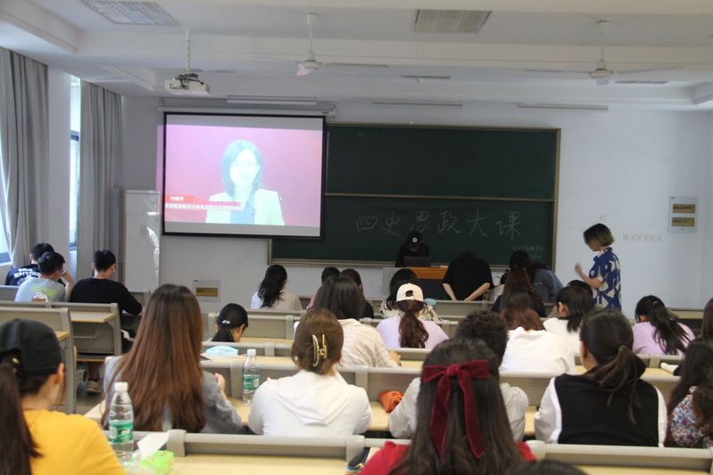 5月22日,由教育部社科司和人民网共同组织,全国大学生“同上四史思政大课”系列课程第四讲——“社会主义发展史”开讲。经济与管理学院组织入党积极分子和部分学生会干部在瑶光楼B101集体观看。