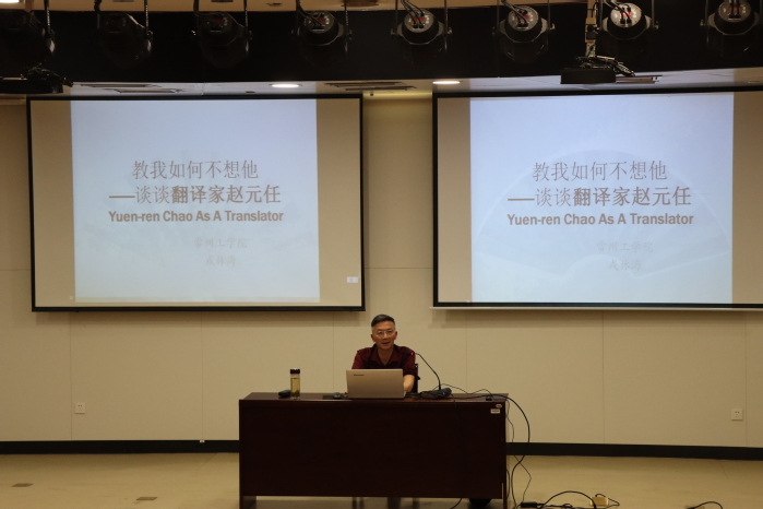 5月25日,校老科协与团委联合举办“教我如何不想他——谈谈翻译家赵元任”科普讲座,特邀校老科协副会长、原外国语学院院长戎林海教授为近150名学生开讲。
