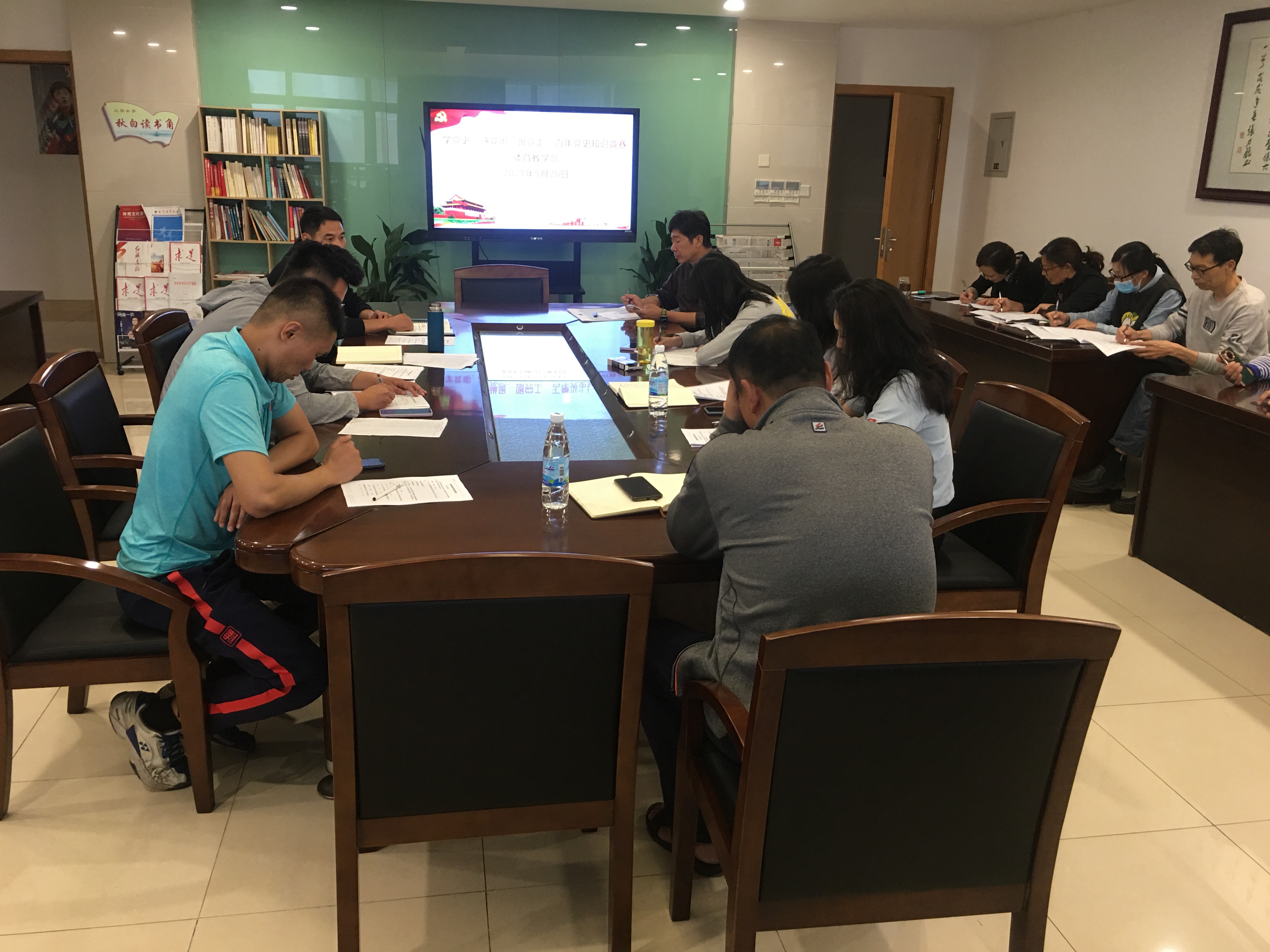 为庆祝中国共产党成立100周年,深入推进党史学习教育,引导广大教师更好地学史明理、学史增信、学史崇德、学史力行,以昂扬的姿态奋力开创工作新局面,5月26下午,体育教学部党总支组织开展“学党史、感党恩、跟党走”党史知识竞赛活动。