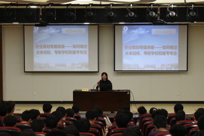 6月4日下午,电气信息工程学院党委副书记高静结合学生生涯咨询中遇到的普遍问题,在图书馆一楼报告厅作《如何确定未来目标、考研学校和报考专业》的专题讲座,全校近200名学生参加。