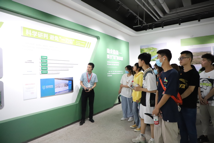 在寻访活动下一站——长江大保护展示馆,同学们通过魏村街道团工委工作人员恽森林的讲解,知道了长江生态发展与常州的精彩故事。通过馆内“破解化工围江”“全线腾退&生态复绿”“高质量转型”三大主题板块展示,同学们认真了解长江大保护工程常州段的业绩,深刻理解了绿水青山就是金山银山的绿色发展理念。