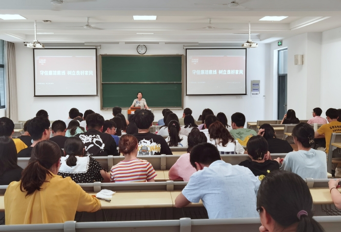 6月16日,化工与材料学院开展毕业生党员廉洁教育专题党课。学院党委书记许玉妹以“守住廉洁底线、树立良好家风”为主题,为即将离校的毕业生党员上了大学“最后一堂党课”,2021届全体毕业生党员共同参加。