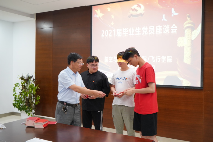 6月22日下午,航空与机械工程学院/飞行学院于学院会议室召开毕业生党员座谈会,学院党委书记尹飞鸿、副书记姜卫及学院兼职党建组织员冉育彭参加座谈会。姜卫主持会议。