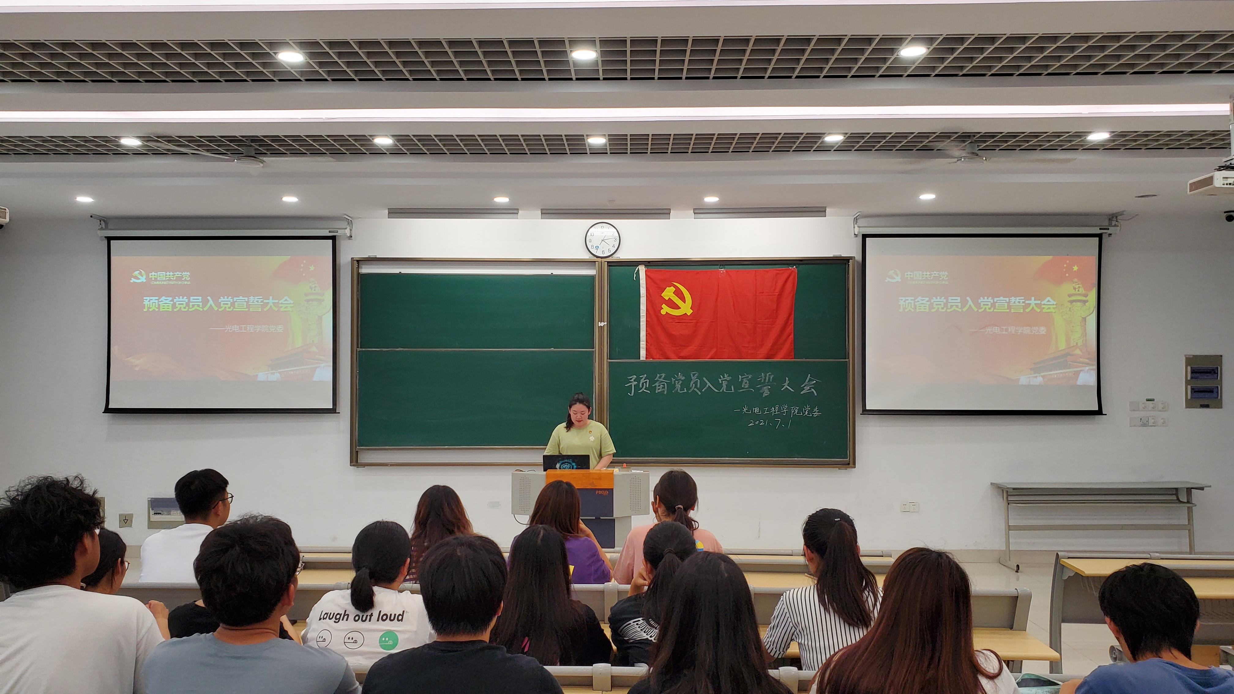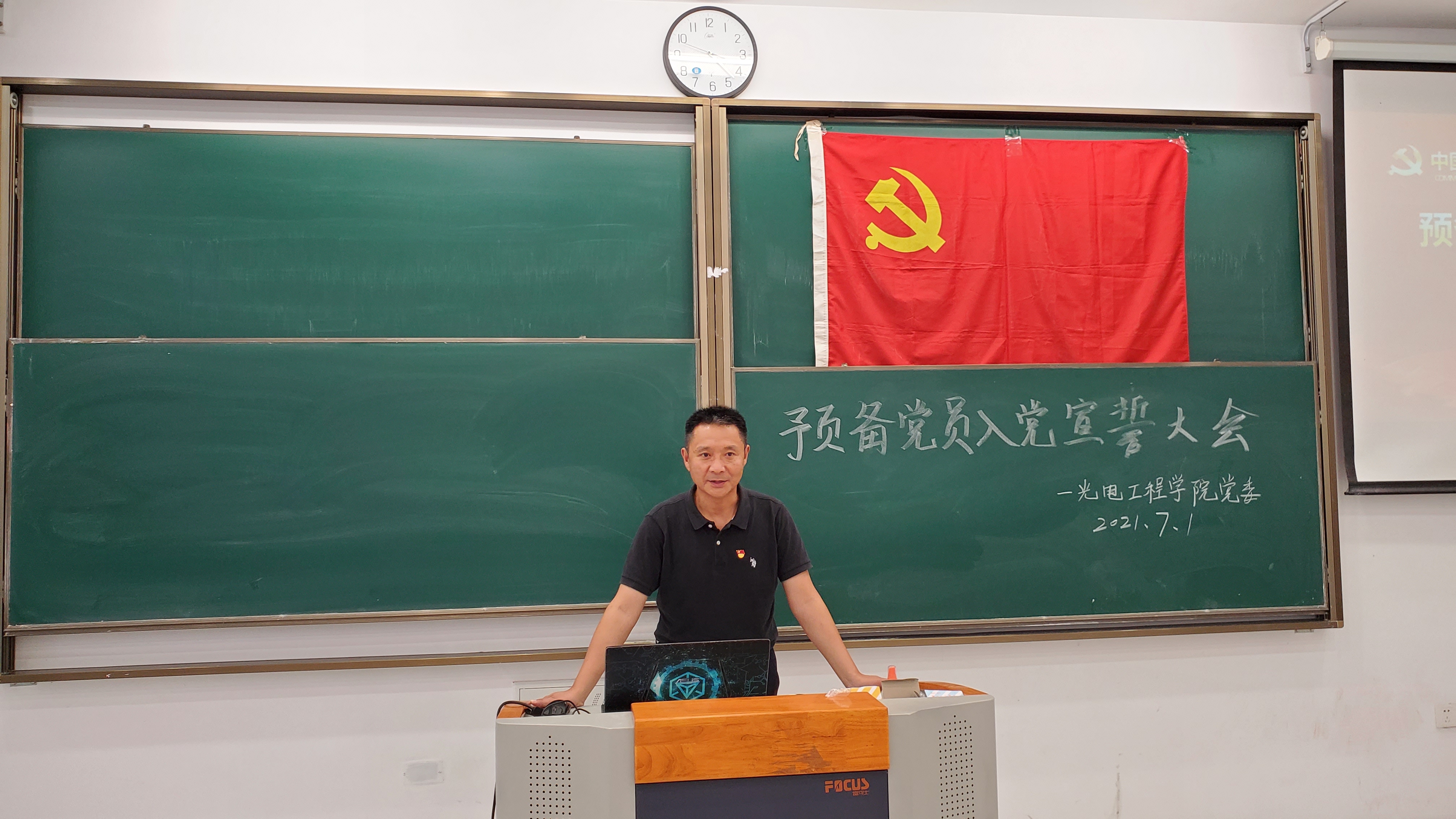 2021年7月1日,恰逢中国共产党百年华诞,在这样特殊的日子里,光电工程学院党委举行预备党员入党宣誓大会,党委书记蒋渭忠出席仪式,17名预备党员以及学生党员代表参加,由辅导员狄清琳主持。