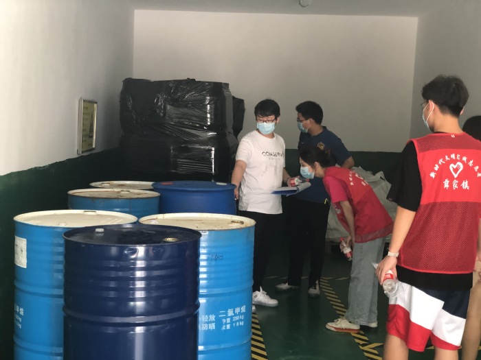 童子河社区主任张金带领化工与材料学院孙潇楠、许鹏和陈晓芳等志愿者,与经济与管理学院张忠、张婷、李姝童、朱越四位师生一起,兵分两路深入常州睿和医药科技有限公司、常州科峰医疗科技有限公司、常州市博盛机械厂等五家企业开展危化品安全检查和企业生产安全检查。