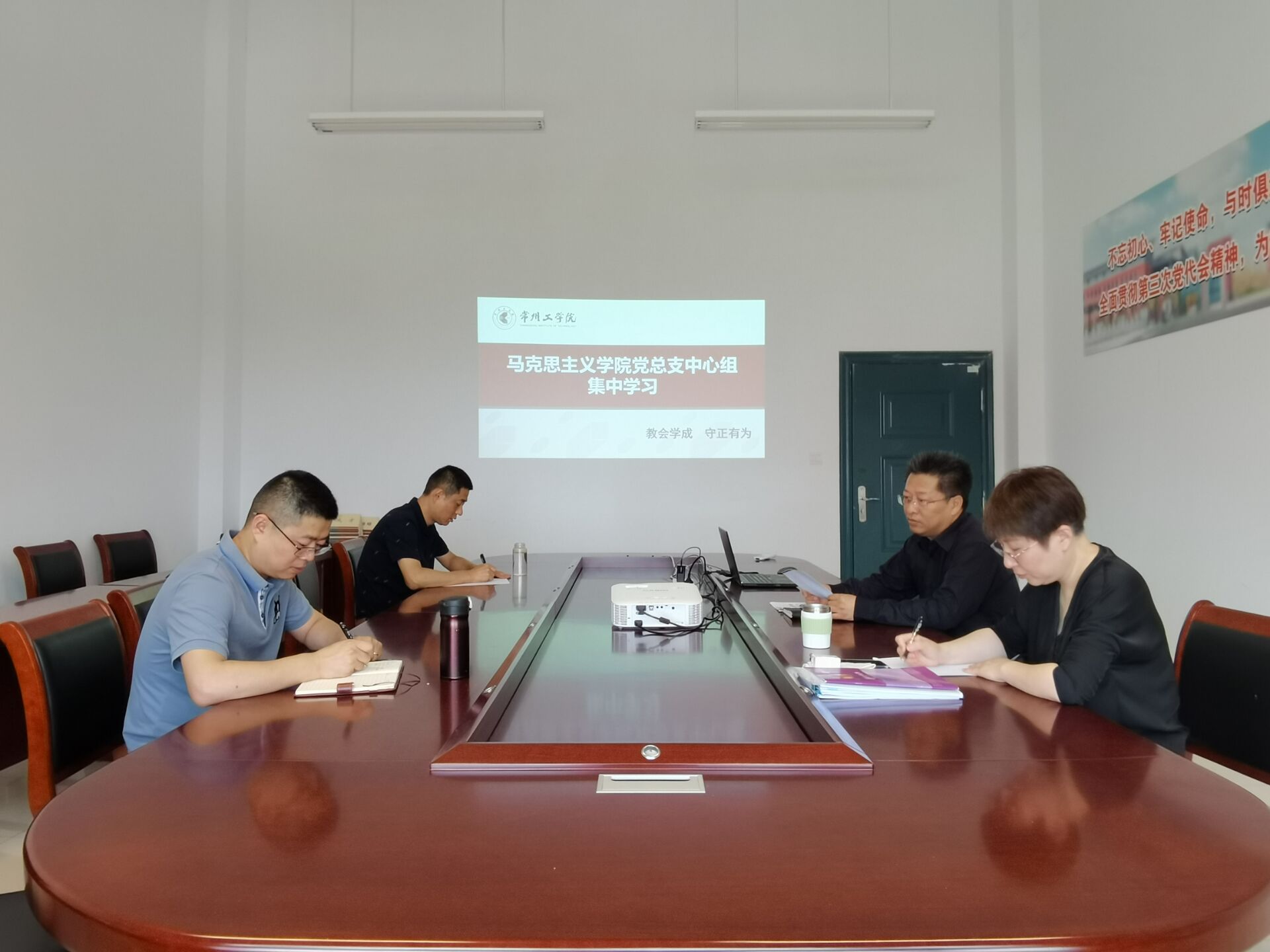 7月7日,马克思主义学院党总支理论学习中心组专题集中学习贯彻习近平总书记在庆祝中国共产党成立100周年大会上的重要讲话精神。学院党总支委员参加集中学习。