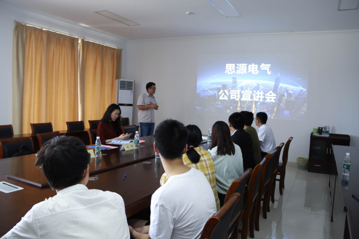 签约仪式结束后,梁小杰向学生代表宣讲企业发展概况,他表示思源电气股份有限公司发展前景广阔、晋升通道清晰、薪资待遇优良,并邀请大家前往公司参观实习。