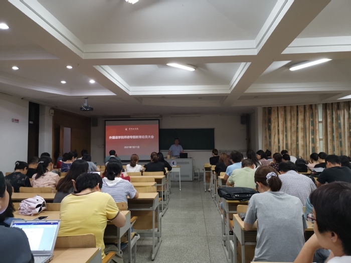 7月11日下午,外国语学院召开师德专题教育动员大会,全面部署学院师德专题教育各项工作,全体教职工参加。学院党委书记刘一鸣主持会议并作动员讲话。