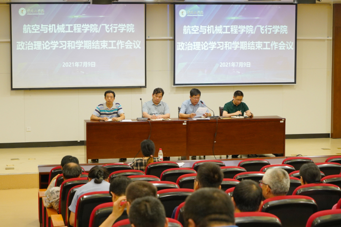 7月9日下午,航空与机械工程学院/飞行学院在图书馆一楼报告厅召开了教职工政治理论学习会和学期结束工作会议,会议由学院党委书记尹飞鸿主持,全体教职工参加会议。