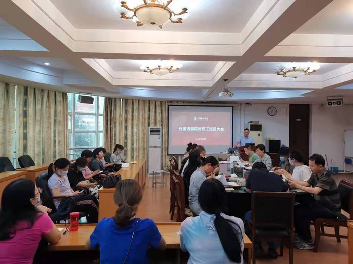 9月15日下午,外国语学院党委召开全体教职工党员大会。学院党委书记刘一鸣、副书记俞贤辉、副院长朱江,学院党委委员及全院教职工党员参加。