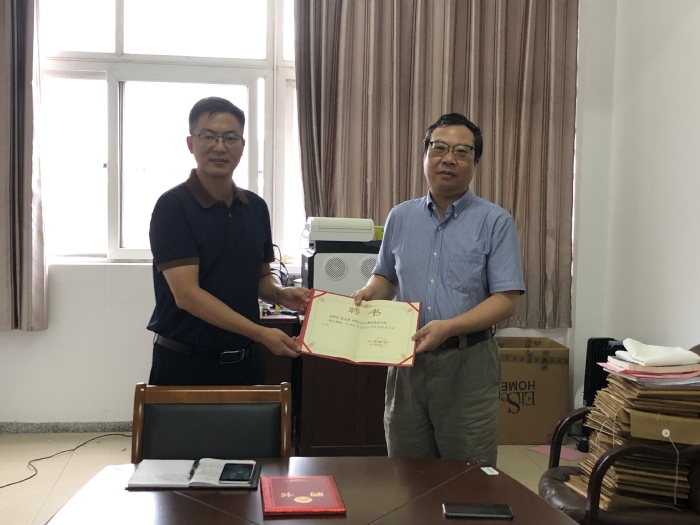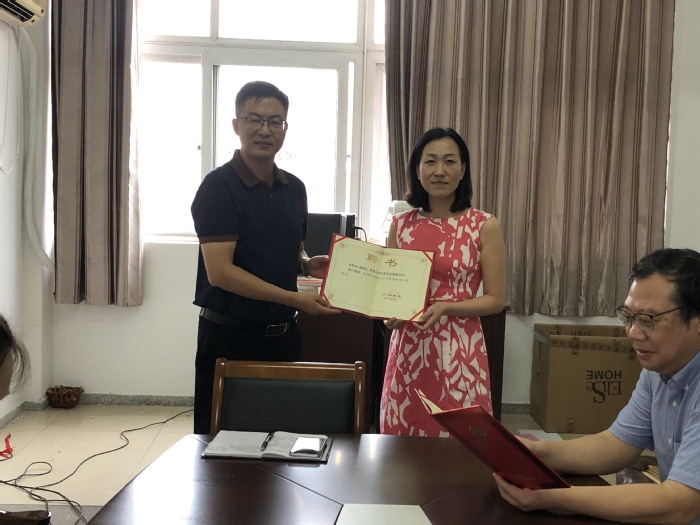 党委书记吴健为青年教师导师陆克寒、谢燕红两位教授颁发了聘书。