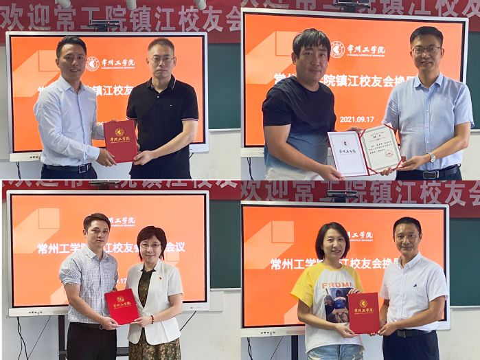 会议选举产生了镇江校友联谊会第二届理事会,我校电气信息工程学院03级通信工程专业校友、镇江市京口区副区长闵佳当选为会长,电气信息工程学院02级电气工程及其自动化专业校友、镇江赛扬自动化科技有限公司业务经理陈亚军、镇江市上元职业培训学校校长许之文当选为副会长,人文学院04级播音主持专业校友、镇江音乐台主持人范芃当选为秘书长。校友联谊会办公室主任王文为镇江校友联谊会授牌并为会长颁发聘书,人文学院党委书记吴健和继续教育学院院长金心为副会长颁发聘书,光电工程学院党委书记蒋渭忠为秘书长颁发聘书。