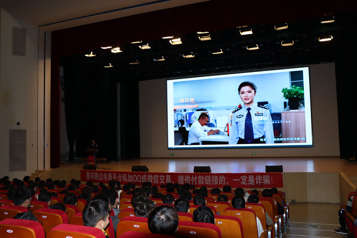 公安民警结合高校电信网络诈骗高发特点,从大学生中发生的真实案例分析入手,总结电信网络诈骗识别公式,对常见被骗案件进行详细剖析,以案释法、以法论事,结合生动形象的小视频对大学生预防通讯电信网络诈骗进行了教育培训。