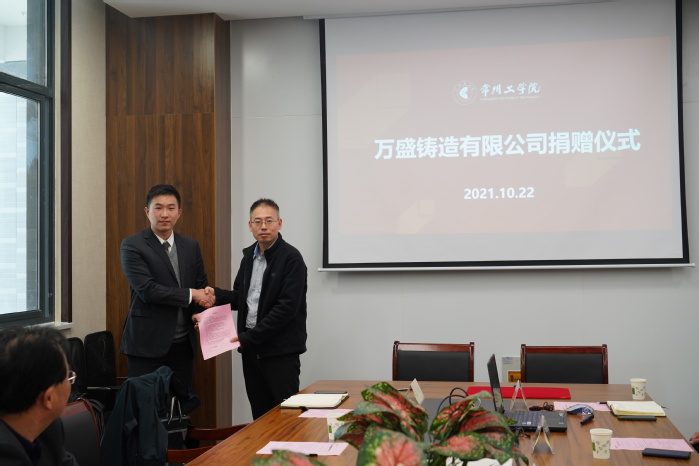 会上,航空与机械工程学院党委书记尹飞鸿对溧阳市万盛铸造有限公司与学院长期以来产教融合工作表示肯定,对溧阳市万盛铸造有限公司捐赠9.6万元用于学院重点实验室硬件改造表示感谢,期望继续开展深度合作。