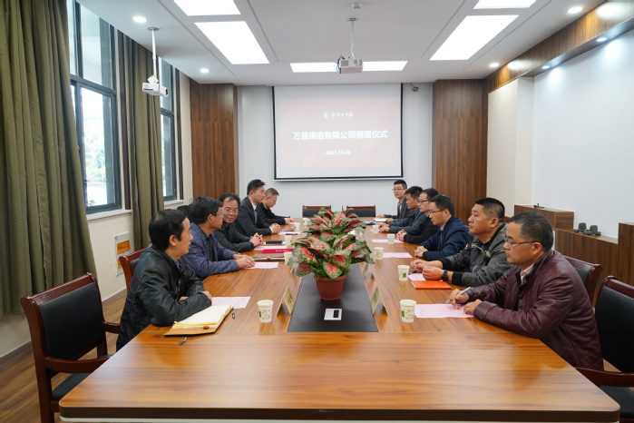 周全法还代表学校向溧阳市万盛铸造有限公司颁发捐赠证书,王文与陈奕翰签订了捐赠协议。