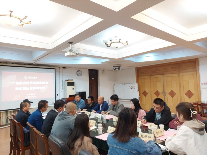 第一阶段,各方就实验室装修情况,对接工作内容,消防安全、项目建设竣工、实验室后期运营的服务等情况作详细汇报说明,明晰我校网络安全管理制度、网络安装对接、网络使用意识形态要求。第二阶段,在“产教融合跨境电商实验室”现场进行对接、交流与评议,一致同意“产教融合跨境电商实验室”通过验收。