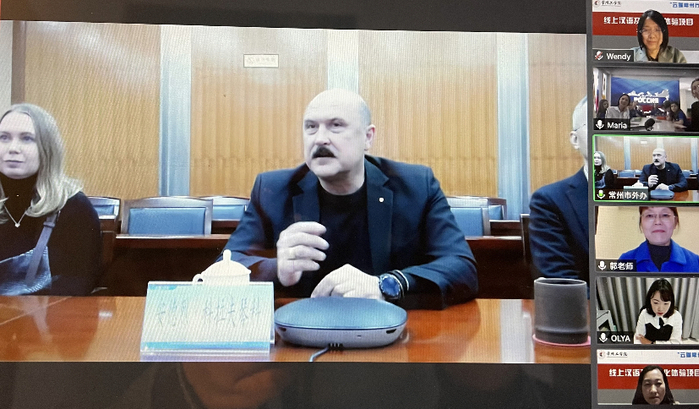 11月26日,常州工学院为俄罗斯斯塔夫罗波尔第45中学“量身定制”的“云端常州行”线上汉语及汉文化体验课程结业典礼在线上落幕,为期2周的线上体验课程圆满结束。常州市人民政府外事办公室副主任沈炼,原斯塔夫罗波尔市副市长、摩诺克里斯光伏科技(常州)有限公司总经理Andrey Kravchenko,俄罗斯斯塔夫罗波尔第45中学校长Tokareva Larisa、教务长 Gusak Yulia,常州工学院国际交流合作处处长王文琴、人文学院院长谢燕红以及相关教师、汉语志愿者、全体学员参加结业典礼。