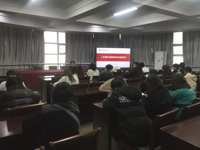 为更进一步关心学院少数民族学生的学习、生活,促进民族文化交流,帮助少数民族学生成长成才,11月24日,人文学院召开少数民族学生交流座谈会,学院党委书记吴健、副书记曹鸣谦、团委书记薛姗以及全院40余名少数民族学生参加座谈。会议由曹鸣谦主持。
