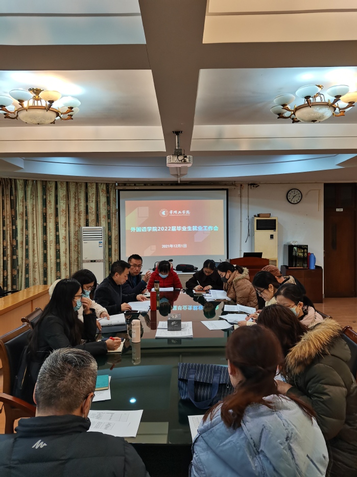 12月1日下午,外国语学院召开2022届毕业生就业工作会。学院党委书记刘一鸣、副书记俞贤辉、各专业系主任、毕业班班主任和全体辅导员参加会议,副书记俞贤辉主持会议。