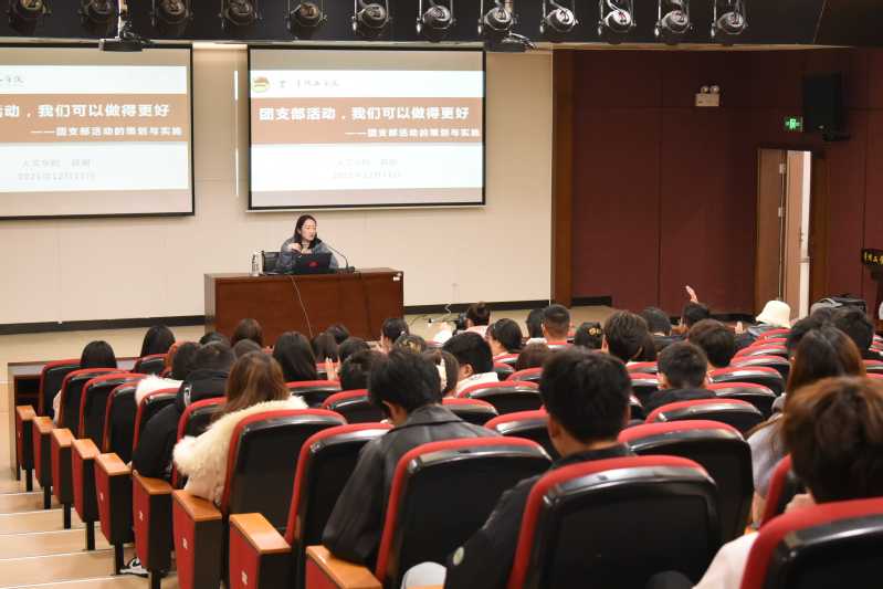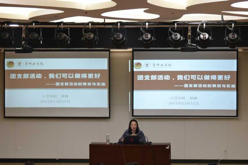 人文学院团委书记薛姗以《团支部活动策划与实施》为题,她重点阐述了主题团日活动、信仰公开课、青年大学习三类团支部活动,希望各位团支书能够创新团支部活动形式,丰富活动内容。