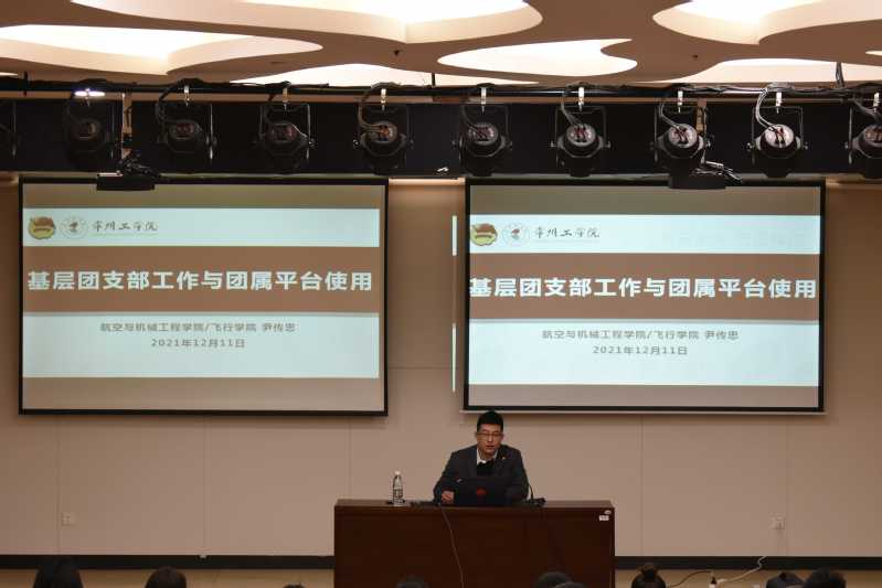 航空与机械工程学院/飞行学院团委书记尹传忠以《基层团支部工作与团属平台使用》为题开讲,他从职责、基本任务、重点工作、特色工作项、基础工作项以及组织生活(工作机制)六个方面解读基层团支书清单,阐述了江苏高校“团支部工作成绩单”、PU平台及智慧团建系统等团属平台使用规则。他希望团支书能够学习文件,领会精神,切实履行团支书职责。