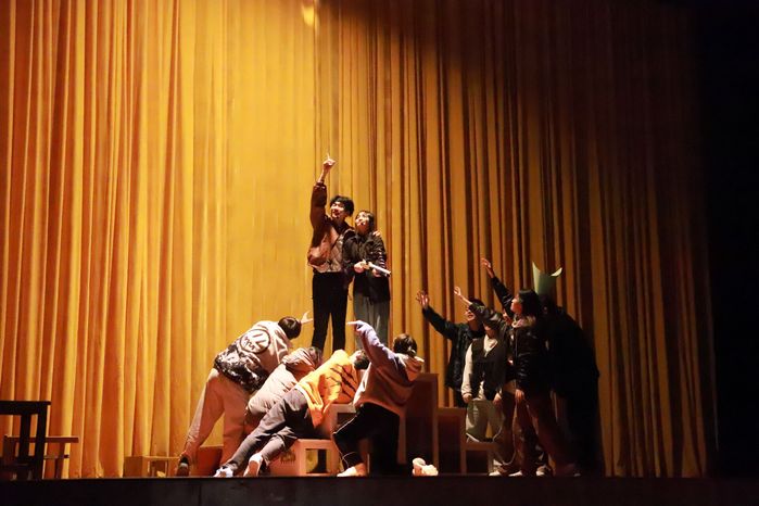 热情的表演点燃了冬夜,理想的放歌赞颂着青春。12月6日,人文学院第六届戏剧节暨课本剧大赛在巫山路音乐厅如期上演。本活动由人文学院团委主办,青果戏剧社承办。学院党委副书记曹鸣谦、青果戏剧社指导老师于士倬、中文系主任张律等老师担任评委。